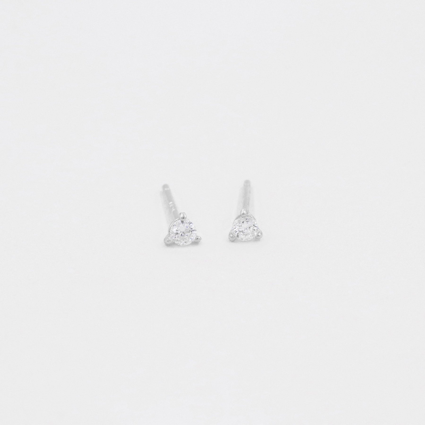 Paire de puces d'oreilles Clara fabriquées en argent massif s925 et cubic zirconia (diamant synthétique). Ces bijoux minimalistes sont disponibles en deux finitions : l'argent massif ou l'argent doré à l'or fin 18k pour un éclat supplémentaire.