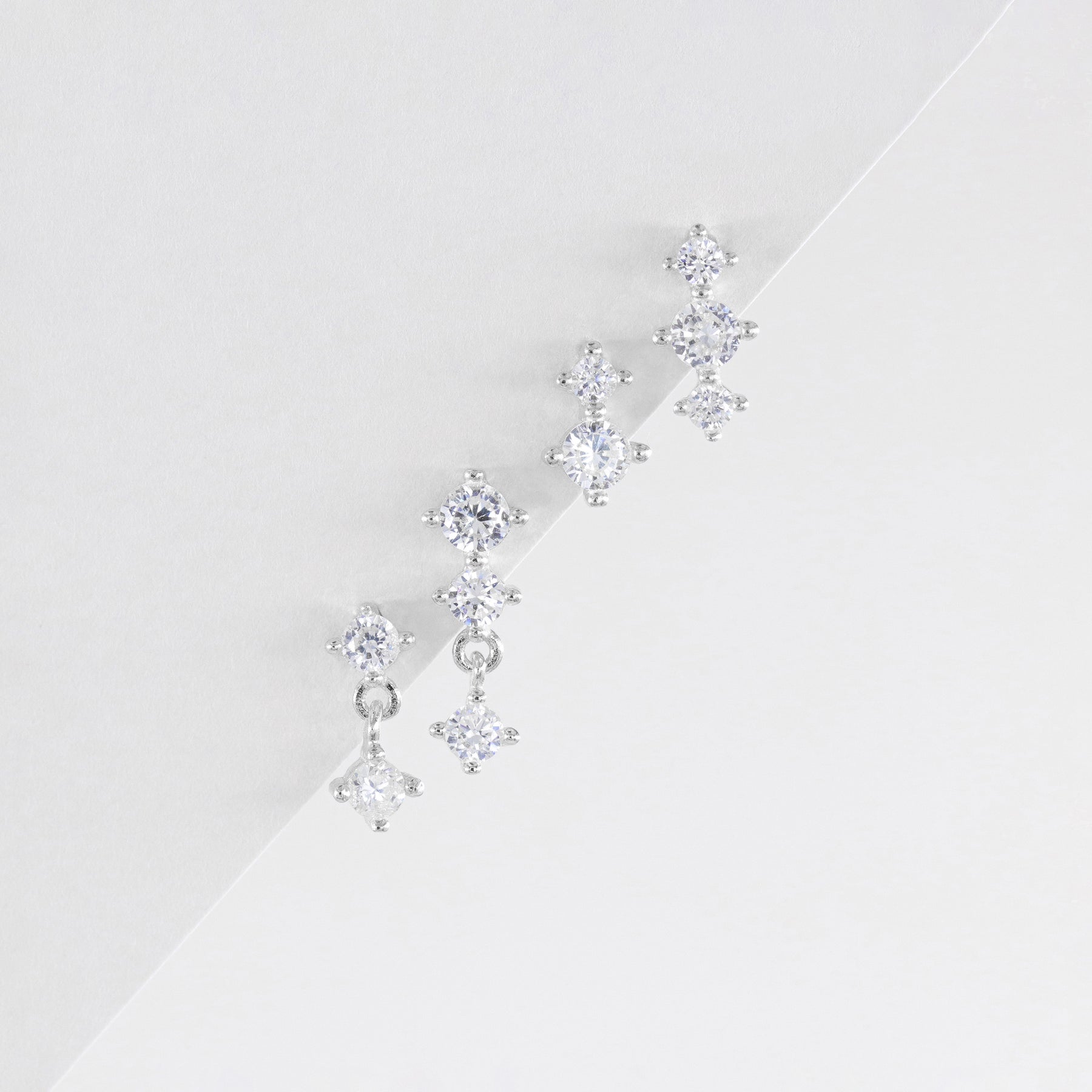 Paire de puces d'oreilles Ophelia fabriquées en argent massif s925 et cubic zirconia (diamant synthétique). Ces bijoux minimalistes sont disponibles en deux finitions : l'argent massif ou l'argent doré à l'or fin 18k pour un éclat supplémentaire et quatre designs différents (voir photos).
