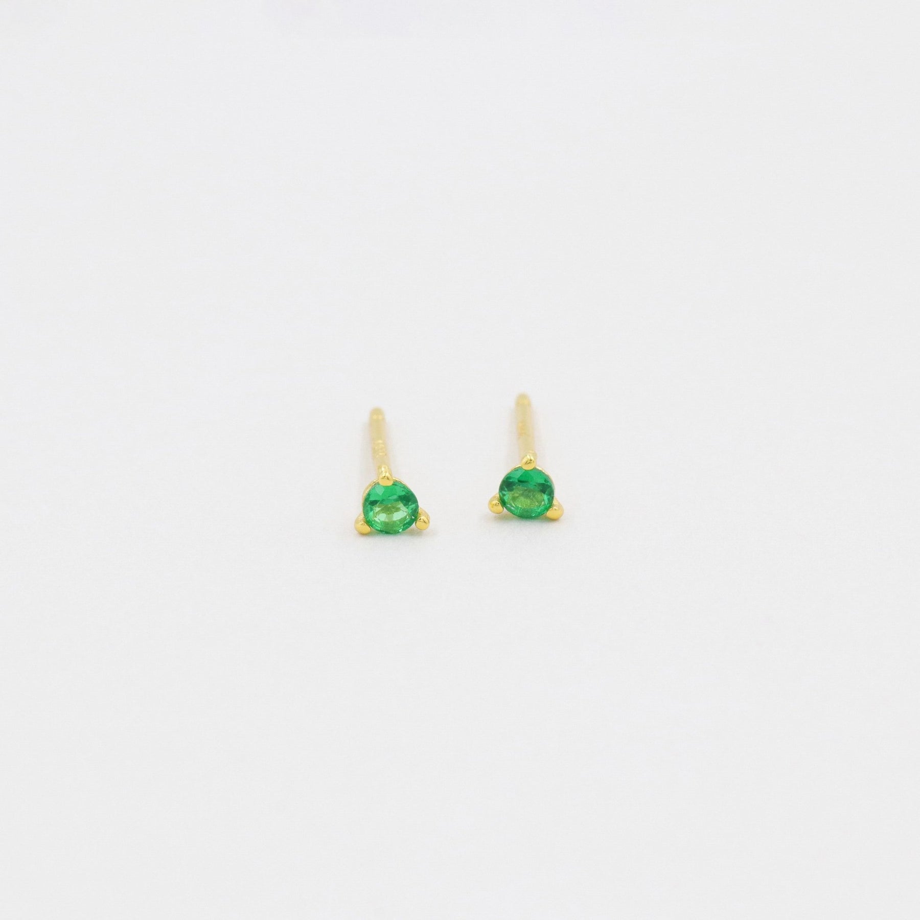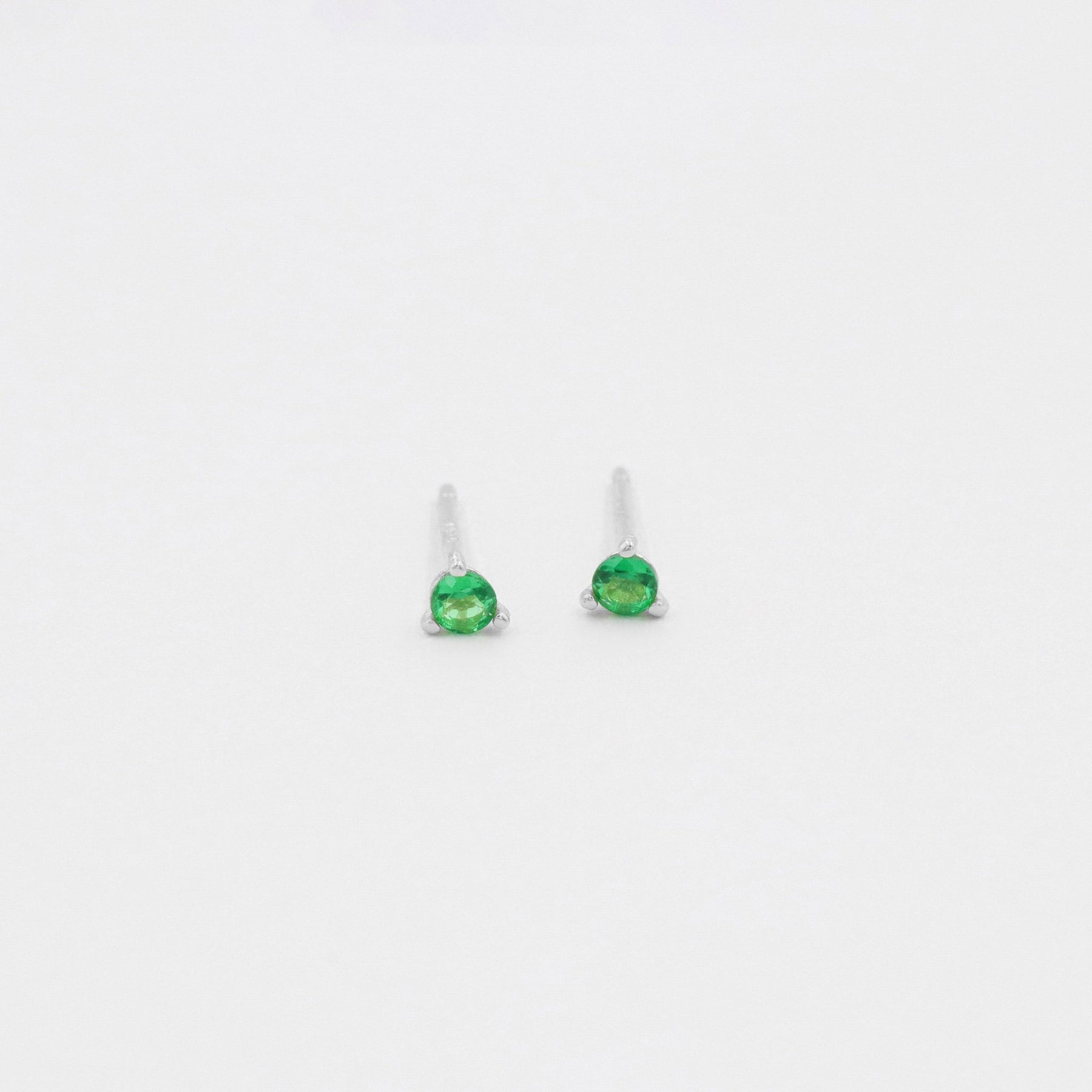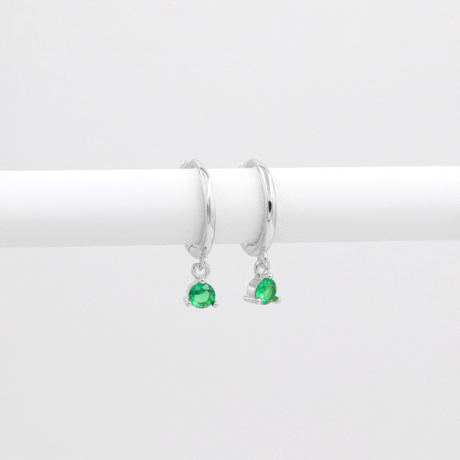 Paire de créoles Clara fabriquées en argent massif s925 et cubic zirconia (émeraude synthétique). Ces bijoux minimalistes sont disponibles en deux finitions : l'argent massif ou l'argent doré à l'or fin 18k pour un éclat supplémentaire.