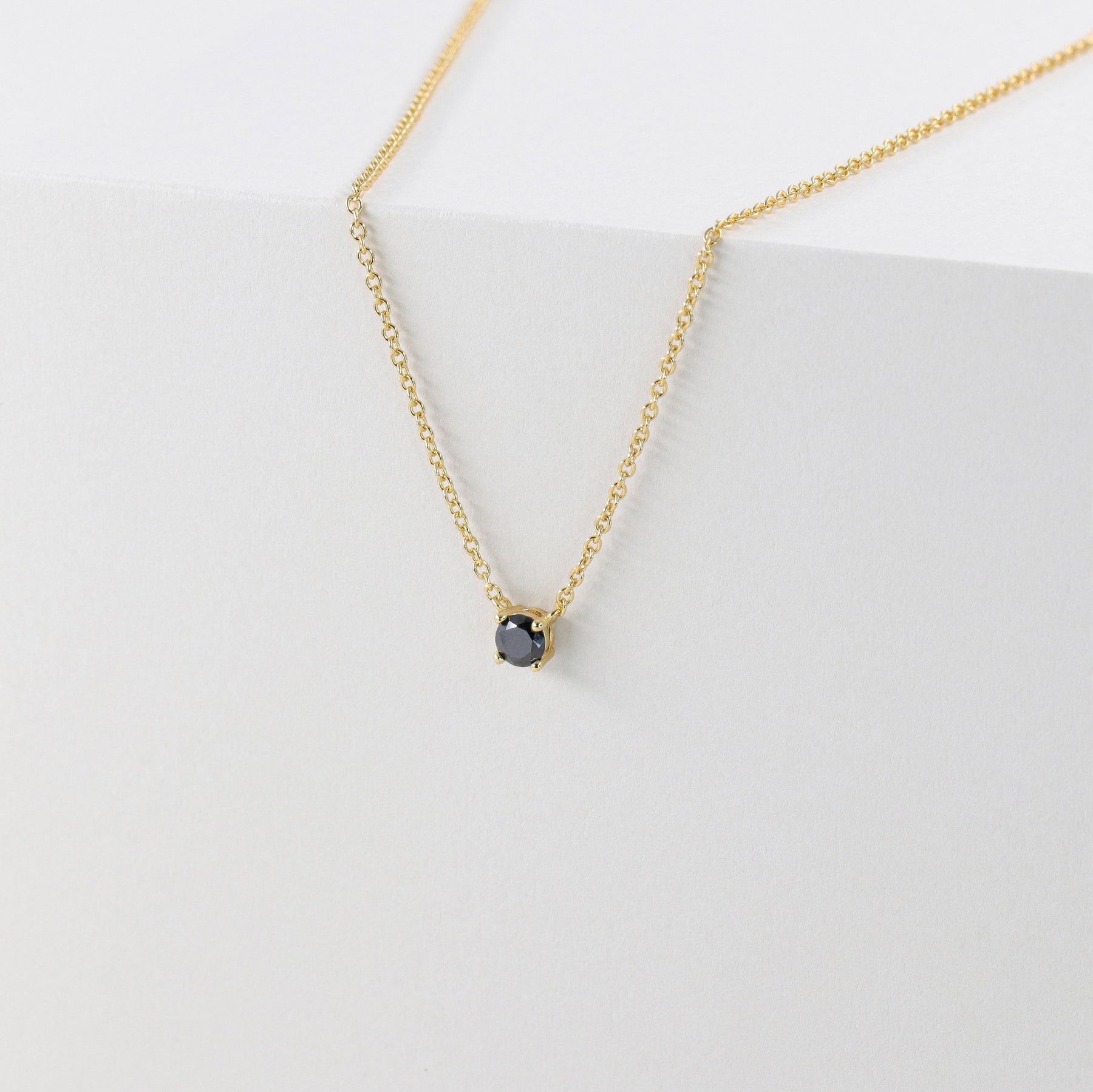 Collier minimaliste Lina fabriqué en argent massif s925. Son design délicat met en valeur un diamant noir synthétique (cubic zirconia) de 4mm, serti clos (bezel) sur une fine chaîne câble. Ce bijou au style solitaire capte la lumière avec grâce et symbolise la pureté et l’élégance.
