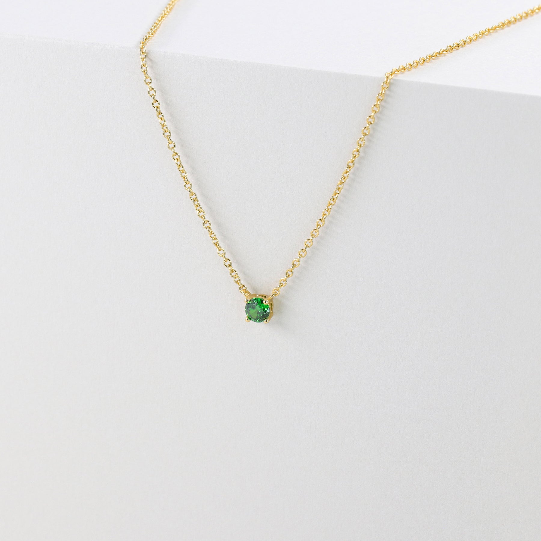 Collier minimaliste Lina fabriqué en argent massif s925. Son design délicat met en valeur un émeraude synthétique (cubic zirconia) de 4mm, serti clos (bezel) sur une fine chaîne câble. Ce bijou au style solitaire capte la lumière avec grâce et symbolise la pureté et l’élégance.