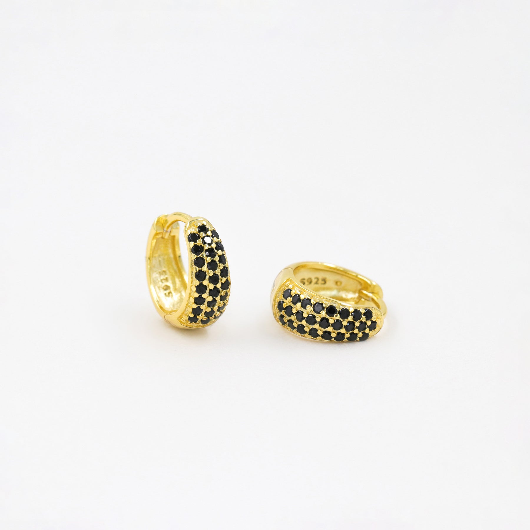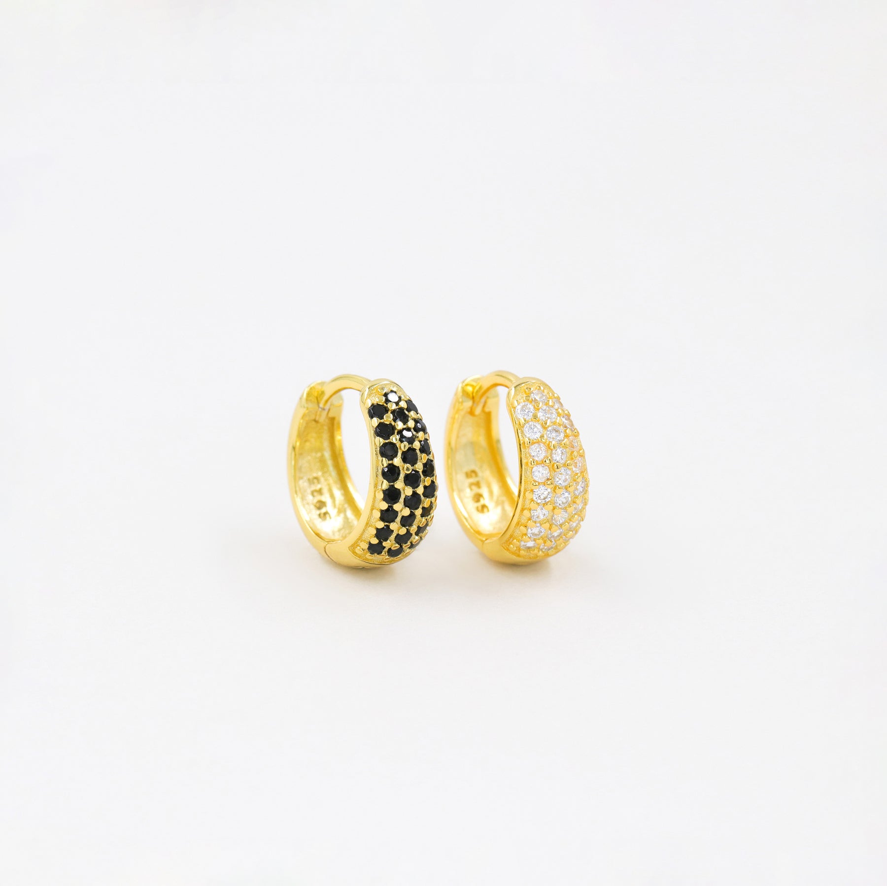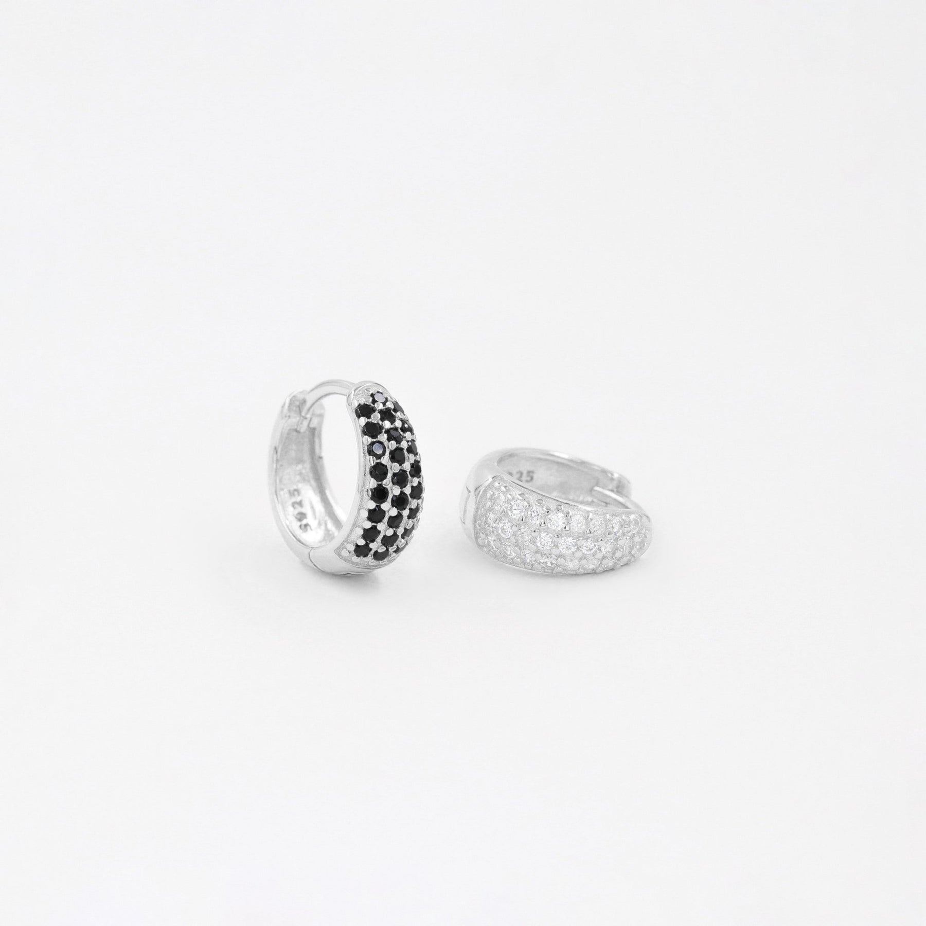 Paire de créoles pavées Isadora fabriquées en argent massif s925 et CZ (diamant blanc ou noir). Ces bijoux minimalistes sont disponibles en deux finitions : l'argent massif ou l'argent doré à l'or fin 18k pour un éclat supplémentaire.