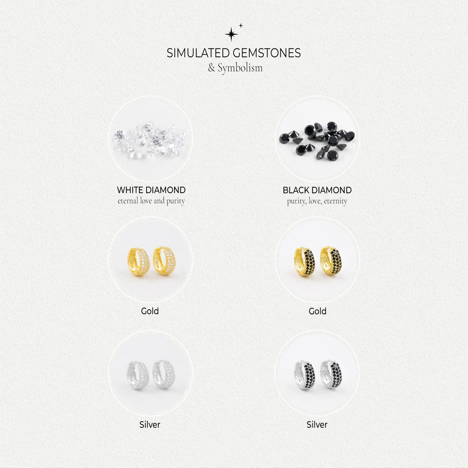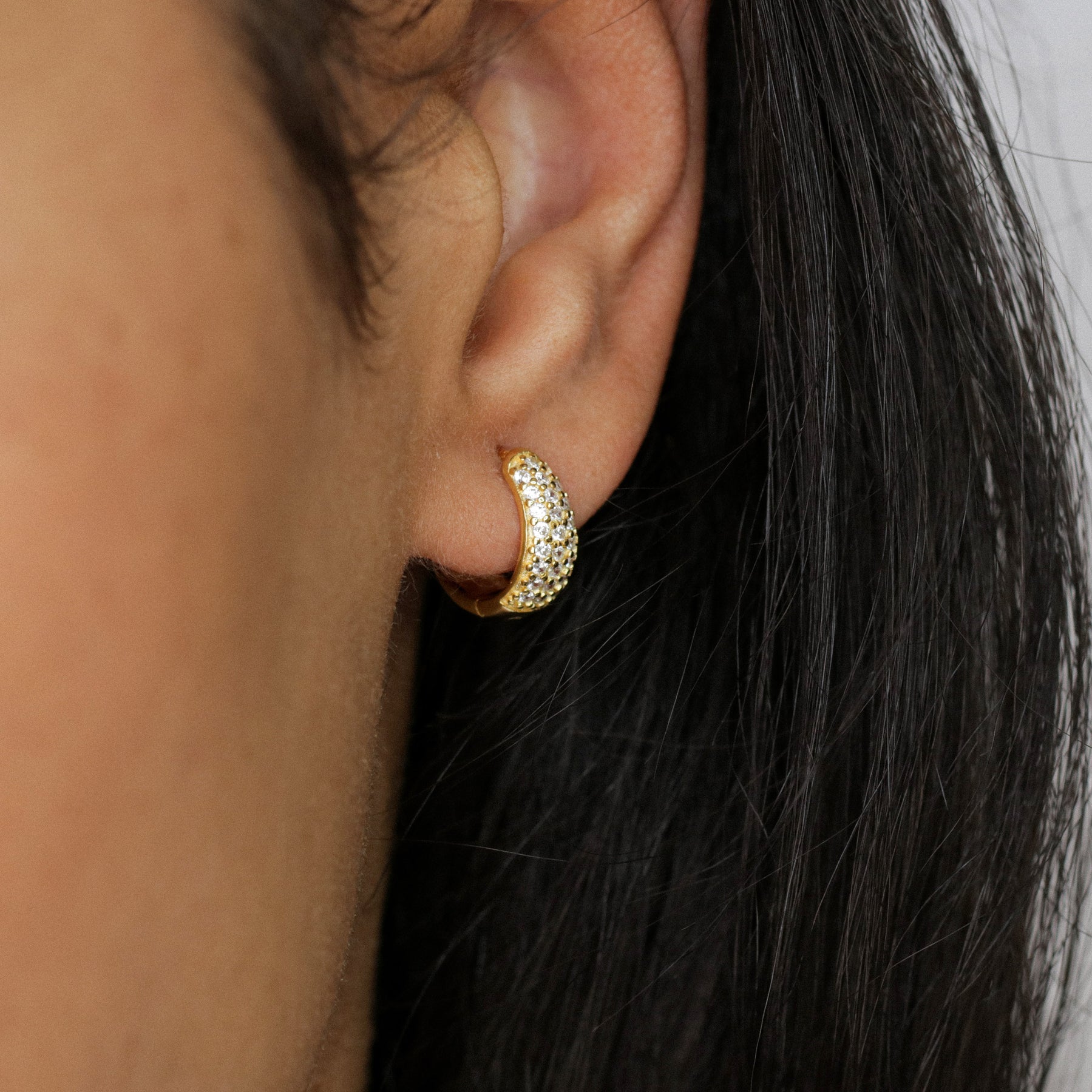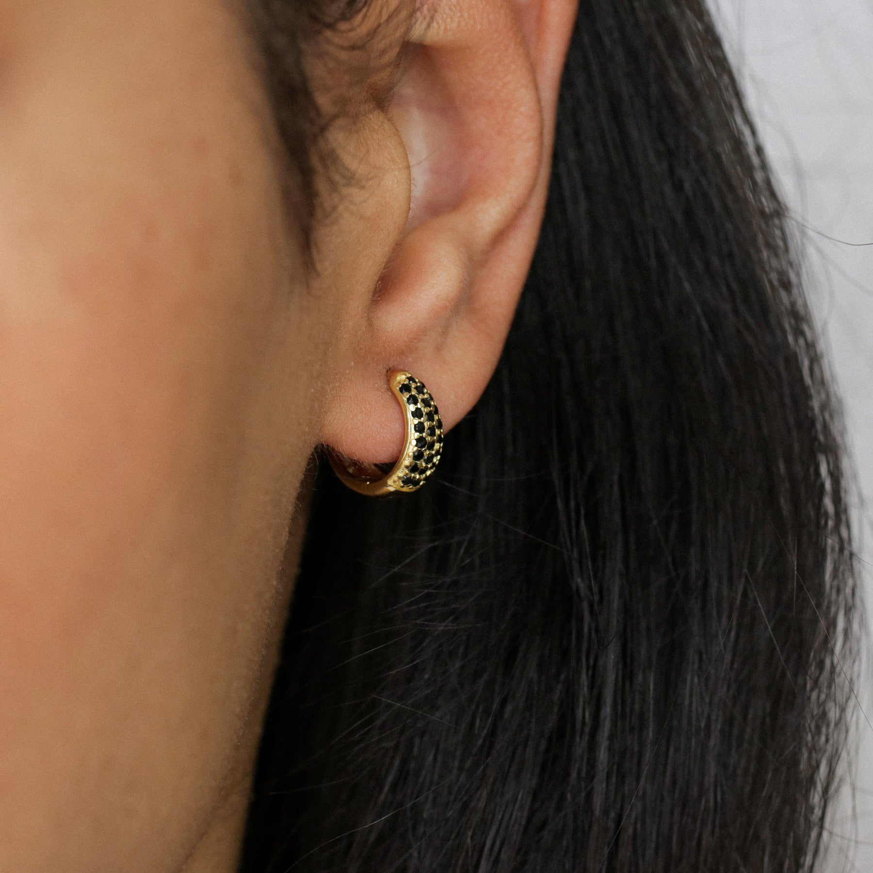 Paire de créoles pavées Isadora fabriquées en argent massif s925 et CZ (diamant blanc ou noir). Ces bijoux minimalistes sont disponibles en deux finitions : l'argent massif ou l'argent doré à l'or fin 18k pour un éclat supplémentaire.